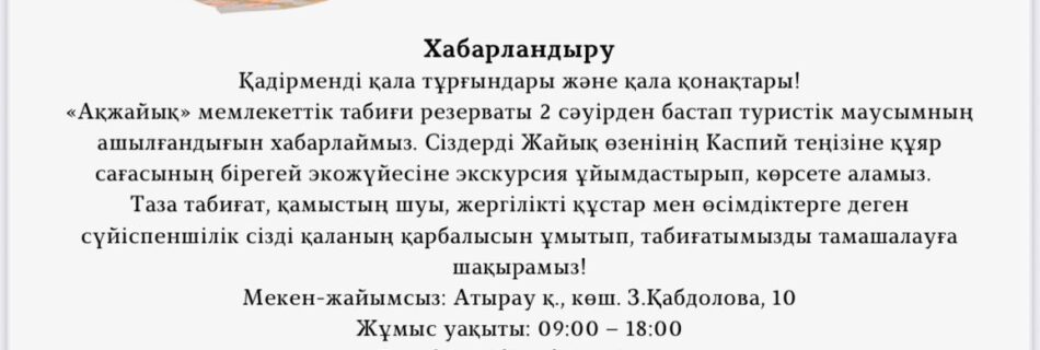 Осы атаулы күнге орай «Ақжайық» мемлекеттік табиғи резерваты аумағында студенттерге арналған шеберлік сағаты ұйымдастырылды. Шара барысында қатысушыларға су маңы және суда жүзетін құстардың санағын жүргізу әдістемесі түсіндіріліп, тәжірибе жүзінде көрсетілді. Табиғатты қорғау, биоалуантүрлілікті сақтау және жас мамандардың экологиялық білімін арттыру бағытындағы мұндай тәжірибелік сабақтардың маңызы ерекше 🌿 Ақжайық #ҚұстарКүні #Экобілім #ТабиғаттыҚорғау